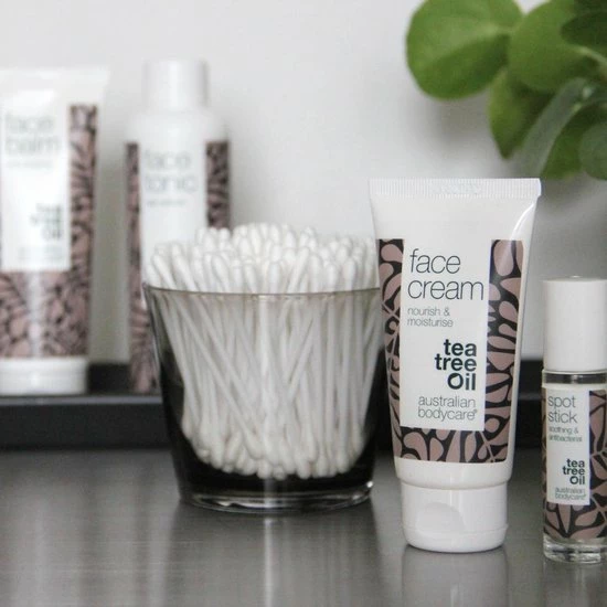 Australian Bodycare Face Cream, een hydraterende gezichtscr?me voor mannen en vrouwen. Perfect tegen pukkels, jeugdpuistjes & mee-eters. Tea Tree olie reinigt en verzorgt de huid. Ook goed bij de verzorging van rode vlekken in je gezicht. Met 100% pure Australian Tea Tree Olie van farmaceutische kwaliteit.
