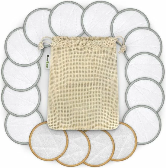 - 12 fluweelzachte pads (60% bamboo, 20% katoen, 20% polyester)
