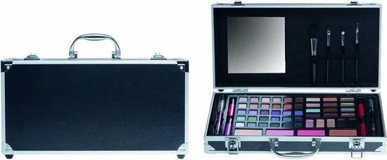 | Verpakkingsinhoud | 1, spiegel, 2, lipgloss, 2, blushers, 2, gezichtspoeders, 1x, dubbel, oogpotlood, 30, oogschaduw, kleuren, 3, oogschaduw, creme, kleuren, 3, wenkbrauw, poeders, 6, lipshimmers, 2, nagellakken, 5, concealer, kleuren, en, 4, cosmetica, borsteltjes, 8, stuks, in, buitendoos. |