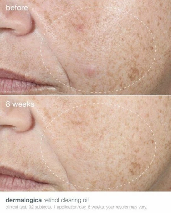 - Breng Retinol Clearing Oil ?s avonds aan op je gelaat en hals