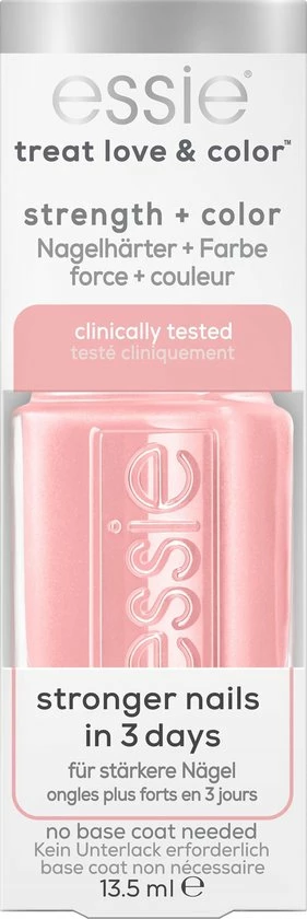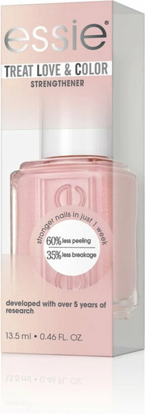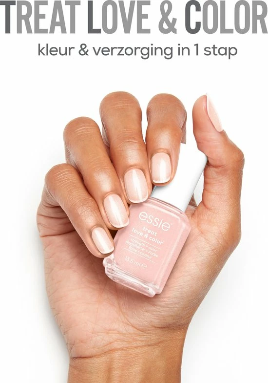De TREAT LOVE & COLOR™ collectie is essie’s kleur en nagelverzorging in één. De collectie is na een periode van meer dan vijf jaar onderzoek ontwikkeld. TREAT LOVE & COLOR™ combineert het beste van nagelverzorging en -kleur in één product. De collectie gekleurde nagelverharders is vooral geschikt voor kwetsbare, brosse en zwakke nagels. de nagellak van TREAT LOVE & COLOR™ geeft sterkere nagels in drie dagen.** * Zoals verboden volgens EU verordening 1223/2009 **Klinische test: na drie (3) dagen gebruiken: minder droge/breekbare nagels, verbeterde nagelsterkte en verbeterde algehele gezonde uitstraling van de nagels