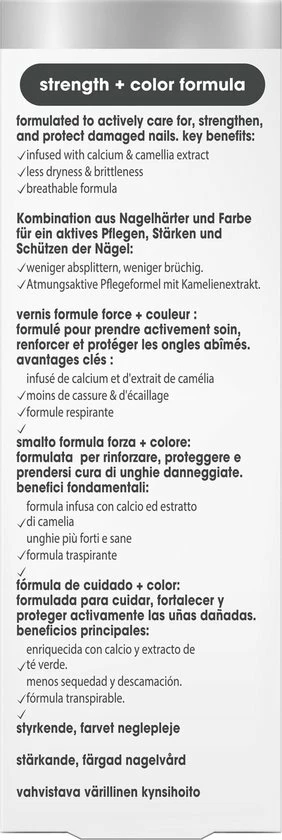 Old – G621 – ingrediënten: Ethyl Acetate, Butyl Acetate, Nitrocellulose, Isopropyl Alcohol, Adipic Acid/Neopentyl Glycol/Trimellitic Anhydride Copolymer, Ethyl Tosylamide, Acetyl Tributyl Citrate, Dimethyl Sulfone, Stearalkonium Hectorite, Acrylates Copolymer, Octocrylene, Propyl Acetate, Tributyl Citrate, Synthetic Fluorphlogopite, Tosylamide/Epoxy Resin, Hydrogenated Acetophenone/Oxymethylene Copolymer, Dimethicone, Calcium Sodium Borosilicate, Citric Acid, Oxidized Polyethylene, Silica, Benzophenone-1, Aqua / Water, Magnesium Silicate, Tin Oxide, Colophonium / Rosin, Alumina, Camellia Sinensis Leaf Extract, Propylene Glycol, Aluminum Hydroxide, Acetone, Phenoxyethanol, Soluble Collagen, Ci 77002 / Aluminum Hydroxide, Trisodium Edta, Potassium Sorbate, [+/- May Contain, Ci 77891 / Titanium Dioxide, Mica, Ci 77491, Ci 77499 / Iron Oxides, Ci 77000 / Aluminum Powder, Ci 77163 / Bismuth Oxychloride, Ci 15880 / Red 34 Lake, Ci 19140 / Yellow 5 Lake, Ci 77266 [Nano] / Black 2, Ci 15850 / Red 7 Lake, Ci 15850 / Red 6 Lake, Ci 77120 / Barium Sulfate, Ci 75470 / Carmine, Ci 77510 / Ferric Ammonium Ferrocyanide, Ci 77820 / Silver, Ci 77510 / Ferric Ferrocyanide, Ci 42090 / Blue 1 Lake, ]. (F.I.L. D189993/6). New – G622 – ingrediënten: Ethyl Acetate, Butyl Acetate, Nitrocellulose, Propyl Acetate, Tributyl Citrate, Isopropyl Alcohol, Tosylamide/Epoxy Resin, Adipic Acid/Neopentyl Glycol/Trimellitic Anhydride Copolymer, Stearalkonium Hectorite, Acrylates Copolymer, Benzophenone-1, Dimethyl Sulfone, Calcium Sodium Borosilicate, Synthetic Fluorphlogopite, Hydrogenated Acetophenone/Oxymethylene Copolymer, Dimethicone, Citric Acid, Oxidized Polyethylene, Acetyl Tributyl Citrate, Barium Sulfate, Alumina, Calcium Aluminum Borosilicate, Colophonium / Rosin, Silica, Aqua / Water, Tin Oxide, Magnesium Silicate, Calcium Pantothenate, Camellia Sinensis Leaf Extract, Aluminum Hydroxide, Phthalic Anhydride/Glycerin/Glycidyl Decanoate Copolymer, Acetone, Ci 77002 / Aluminum Hydroxide[May Contain Ci 77891 / Titanium Dioxide, Mica, Ci 77491, Ci 77499 / Iron Oxides, Ci 15880 / Red 34 Lake, Ci 19140 / Yellow 5 Lake, Ci 15850 / Red 6 Lake, Ci 77400 / Bronze Powder, Ci 15850 / Red 7 Lake, Ci 77288 / Chromium Oxide Greens, Ci 42090 / Blue 1 Lake, Ci 77510 / Ferric Ammonium Ferrocyanide, Ci 77000 / Aluminum Powder, Ci 77163 / Bismuth Oxychloride, Ci 77266 [Nano] / Black 2, Ci 60725 / Violet 2] (F.I.L. D251153/2)