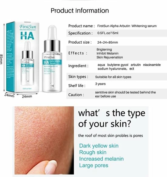 Met 2% gezuiverde alfa arbutine en hyaluronzuur.