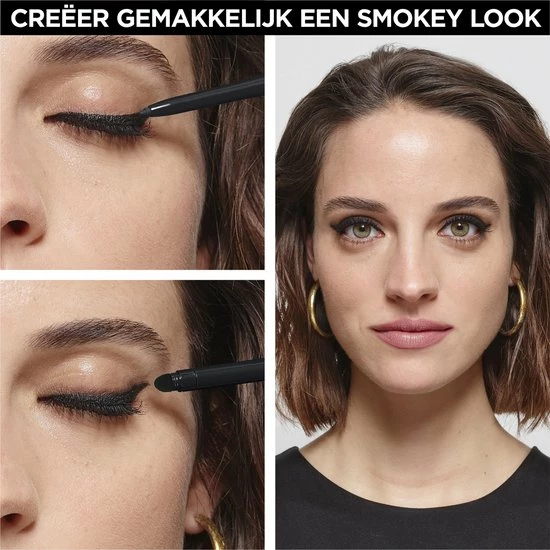 Stap 1: Breng het oogpotlood aan door een lijn te trekken boven de wimperaanzet waarbij je de eyeliner vanuit de binnenkant van het oog naar de buitenkant laat glijden. Stap 2: Voor een extra intense look blend met de sponsapplicator