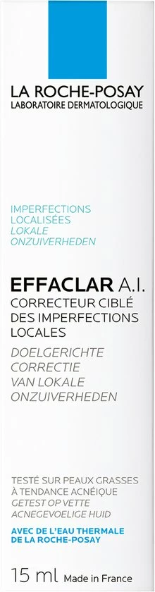 Handig om mee te nemen en aan te brengen: Effaclar A.I. komt in een tube met aanbrengtuitje waarmee je elk puistje of mee-etertje eenvoudig kunt aanstippen. Deze S.O.S.-crème bij onzuiverheden wordt snel door de huid geabsorbeerd, zonder zichtbare witte sporen. Niet irriterend gevoel, niet-comedogeen, parfumvrij.