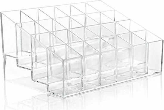 Nu kun je eindelijk je make-up bijhouden met deze handige organizer. Een slimme en elegante manier om make-up en cosmetica op te bergen. Hier zijn 24 kamers met ruimte voor lippenstift, make-up kwasten, lipgloss, nagellak en dergelijke.