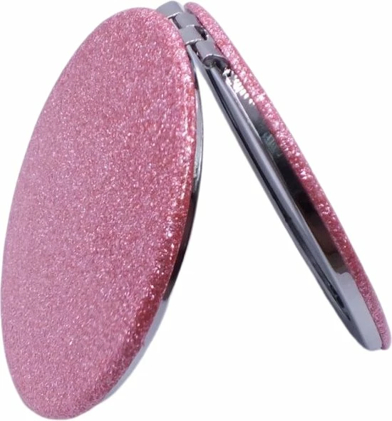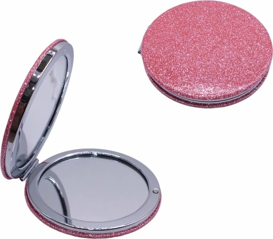 Makkelijk mee te nemen zakspiegeltje gemaakt van PU nep/kunstleer met glitters.