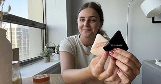 DUBBEL GEVORMD ONTWERP – gebruik de afgeronde rand wanneer u foundation op de wangen en het voorhoofd aanbrengt, de driehoek is gemakkelijker aan te brengen onder de ogen en de hoeken van de huid, waardoor de make-up delicater en gemakkelijker wordt.