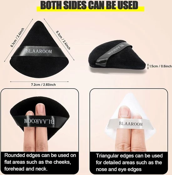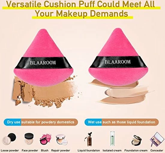 POWDER PUFF – dit driehoekige make-up puff fluwelen katoenen materiaal voelt zacht aan, de ingebouwde elastische spons is niet gemakkelijk te vervormen, gemakkelijk wasbaar en herbruikbaar.