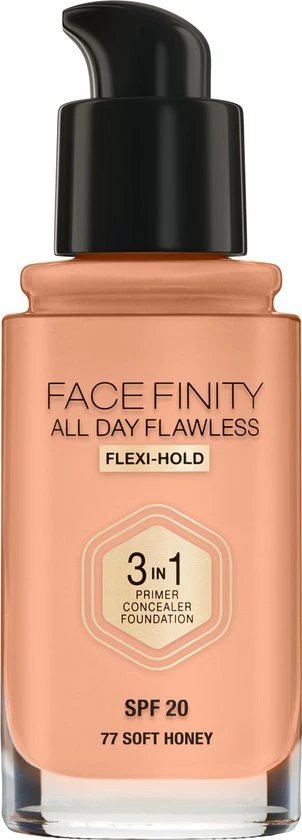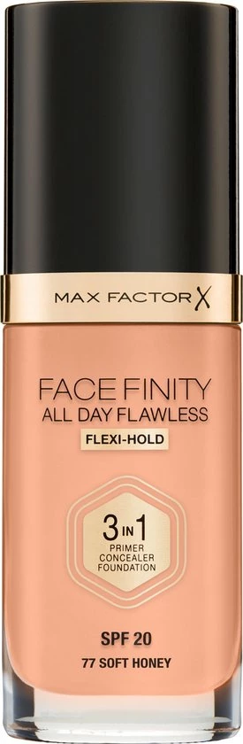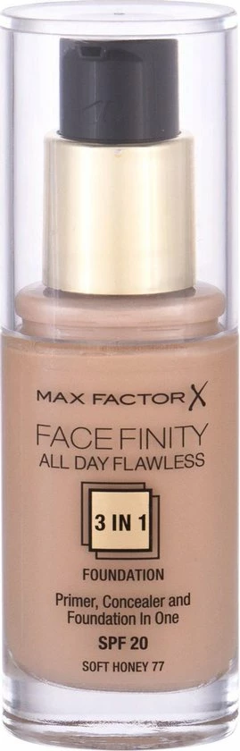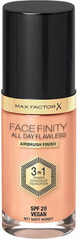 De Max Factor Facefinity All Day Flawless 3-in-1 Foundation is een vloeibare foundation, primer en concealer in ??n voor een langhoudende en matte finish. De foundation bevat een water-in-siliconen emulsie die makkelijk opbouwbaar is en zorgt voor een medium tot hoge dekking. Dankzij de primer blijft de make up foundation de hele dag zitten en dankzij de concealer worden oneffenheden en imperfecties perfect verhult. Dankzij de lichtgewicht formule voelt de 3-in-1 foundation licht aan. De foundation blijft ook zitten als je een mondkapje draagt!
