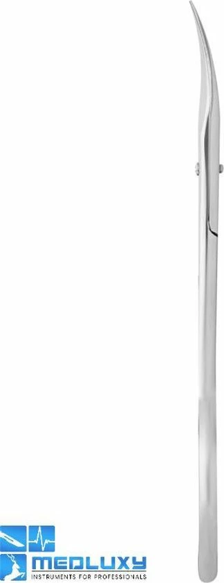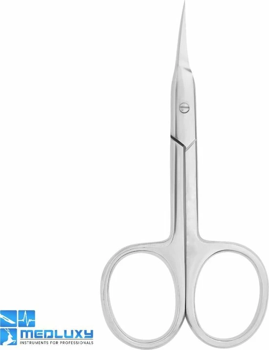 De Medluxy Nagelriemschaar (huid- en vellenschaartje) is met de hand vervaardigd van hoogwaardige kwaliteit rvs. De schaar heeft een gebogen spits toelopende scherpe punt. De oogringen zijn goed ruim zodat duim en vinger goed grip hebben. Hierdoor is het schaartje nauwkeurig te bedienen en heeft betere begeleiding met de vingers. Het knippen van nagelriemen en velletjes gaat met deze nagelriemschaartje gemakkelijk. De totale lengte is circa 10 cm.