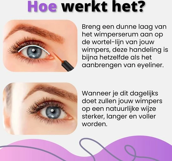 Wil jij binnen korte tijd sterkere, vollere en langere wimpers? Dan is dit wimperserum precies wat je zoekt!. De formule van het wimperserum is dermatologisch getest en zorgt ervoor dat binnen enkele weken jouw wimpers er mooier uitzien. De applicatie is erg gemakkelijk en kost je geen moeite.
