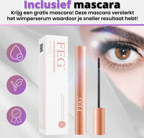 Wanneer je dit wimperserum bestelt, ontvang je twee handige extra’s. Je ontvangt namelijk een unieke mascara, deze mascara is waterproof, 100% natuurlijk, vegan en hij versterkt het wimperserum waardoor je sneller resultaat hebt!