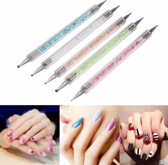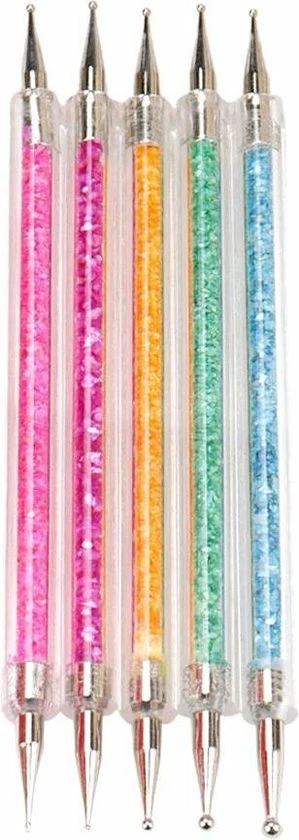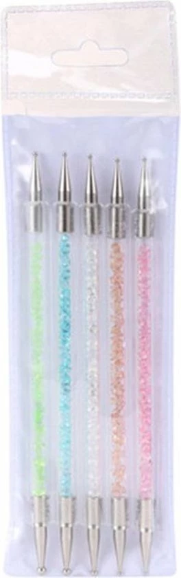 Gebruik deze prachtige druppelpennen met gekleurde kristallen om je nagels te versieren met druppeltjes nagellak. Iedere druppelpen bevat aan twee kanten een druppelpen waarmee je de prachtigste nail art kunt maken. Deze druppelpennen zijn ook ideaal voor snake skin nail art.