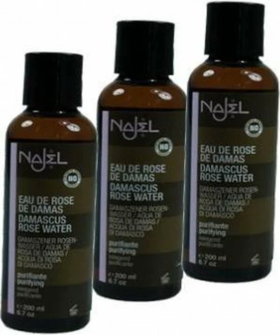 | Damascus Rozenwater voor zuivering van chakra’s, aura en huid – 200 ml Najel Damascus rozenwater verwijdert onzuiverheden in de huid en werkt ook als vochtinbrenger. Het ouder worden van de huid wordt tegengegaan en het werkt kalmerend bij irritaties van de huid. Dit bloemenwater bevat geen dierlijke ingrediënten, kunstmatige kleur-, geur- of bewaarstoffen. Bewaar in de koelkast. Niet op dieren getest. Getest onder dermatologische voorwaarden. Najel Damascus Rose Water is ook een uitstekende chakra en aurareiniger. Gebruik hiervoor een verstuiver. Ingrediënten: Rosa Damascena Flower Extract (Citronneloil, Geranoil, Linaooil, Limonene), Aqua. -Damascus Rozenwater biologisch – 200 Inhoud: 200 ml
