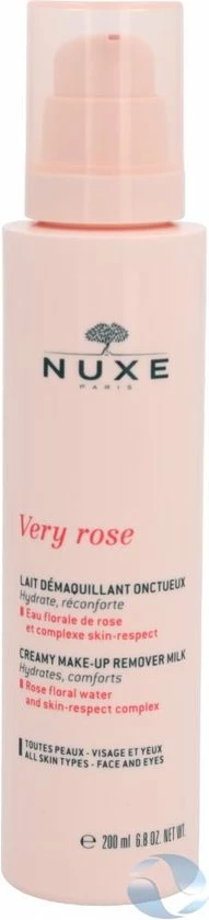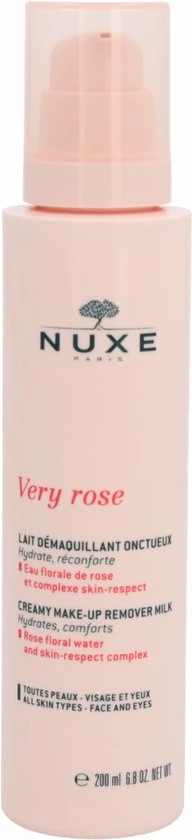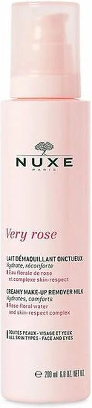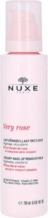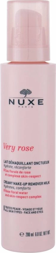 Nuxe Very Rose Creamy Make-Up Remover Milk bevat het kalmerende en verzachtende rozenwater, dat voor alle huidtypen geschikt is. Het Skin-Respect Complex met hydraterende suikers helpt de natuurlijke huidbarrière te versterken. Reinigende stoffen uit maïs en kokos verwijderen vuil en make-up effectief en respecteren de huid.