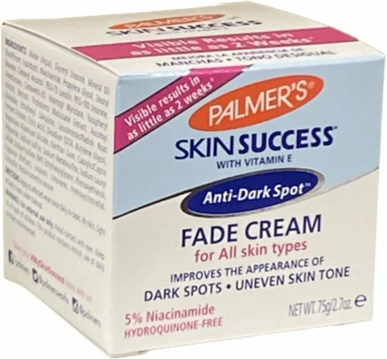 Palmers Skin Success Fade Cream met vitamine C en E is geschikt voor de vette huid. Het voedt de huid en zorgt voor stevigheid. Het vermindert donkere vlekken, sproeten en andere huidverkleuringen veroorzaakt door leeftijd, zon, littekens of zwangerschap. Geschikt voor dagelijks gebruik. Verkrijgbaar voor de normale, droge en vette huid.
