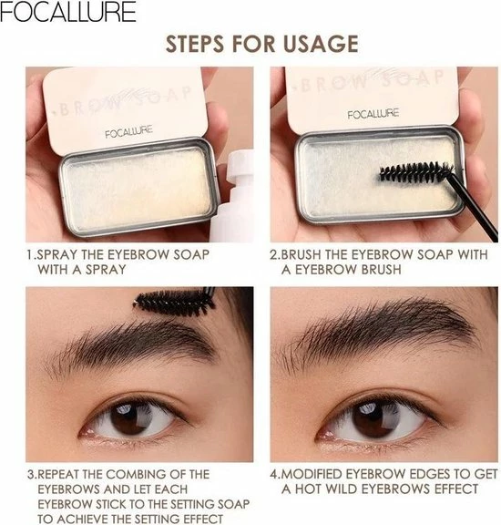 - Maak de wenkbrauw borstel nat met water of fixing spray en dip het vervolgens in de wenkbrauwsoap.