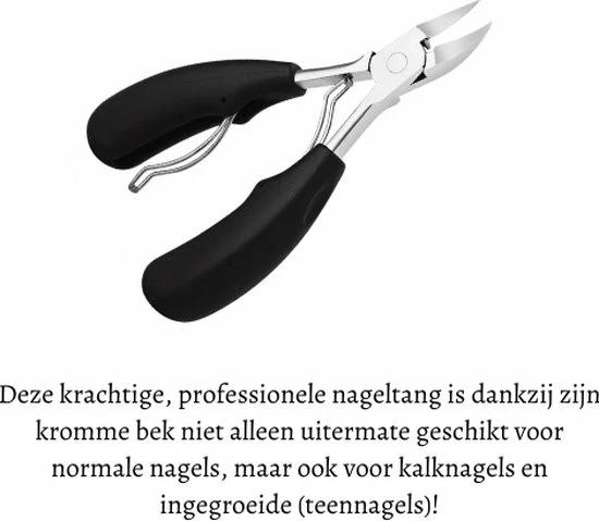 Bovendien is de professionele nagelknipper/tang dankzij zijn kromme bek en uitermate geschikt voor het knippen van kalknagels en ingegroeide (teen)nagels.